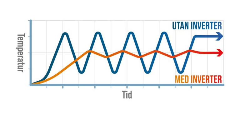 Våra produkter producerar ingen överflödig värme eller kyla. Med den senaste invertertekniken arbetar kompressorn kontinuerligt, men med en hastighet som varierar beroende av ditt behov av värme eller kyla. Det ger ökad besparing, mindre slitage och lägre ljudnivå. Under en 12-månaders period kan detta innebära en energibesparing på upp till 40 %. En energibesparing som gynnar både dig, din ekonomi och miljön.