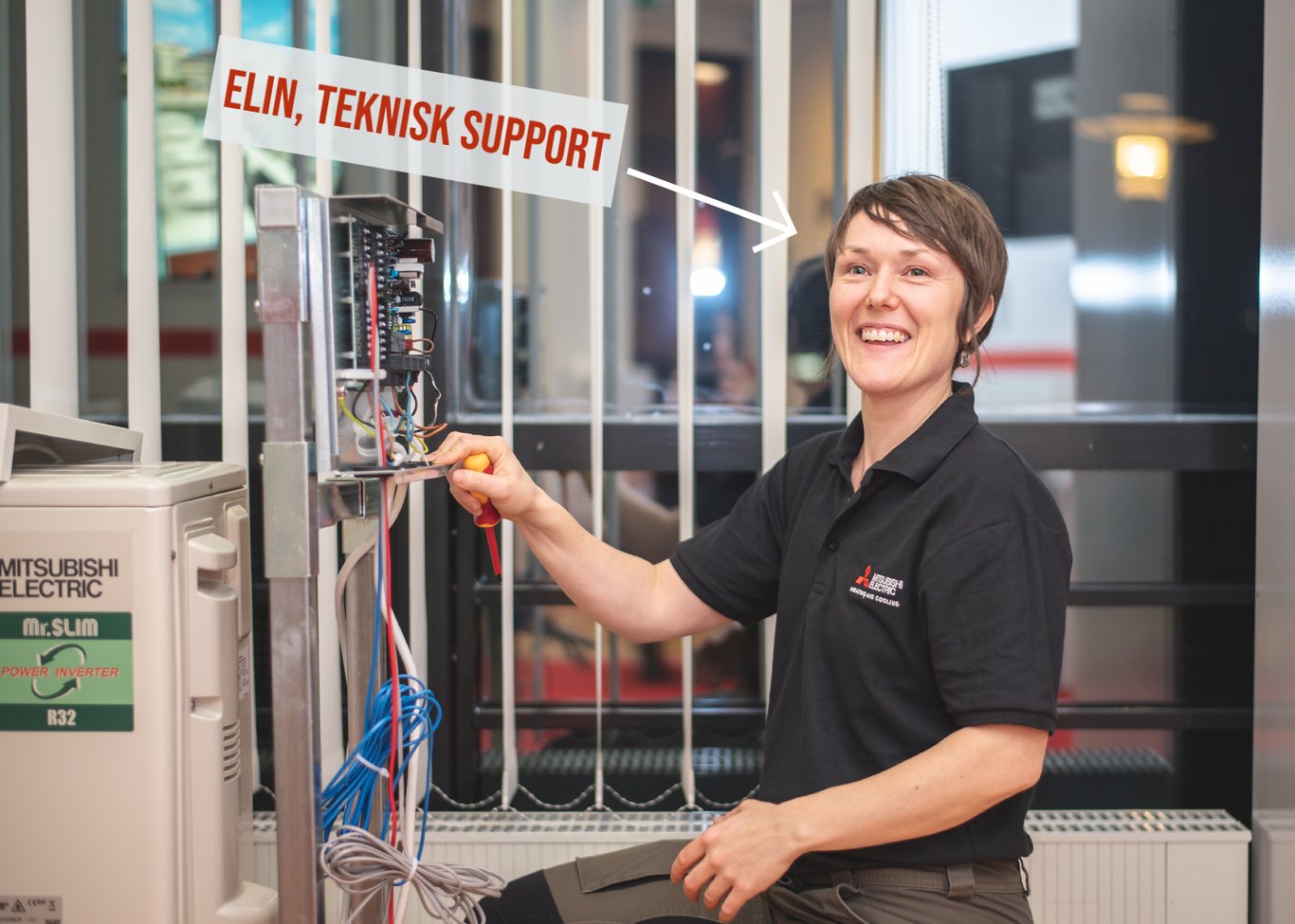 Det här är Elin, en av våra tekniska supportmedarbetare. Hon har arbetat som kyltekniker i över 20 år och vet hur mycket som krävs för att en värmepump ska fungera som den ska år efter år.