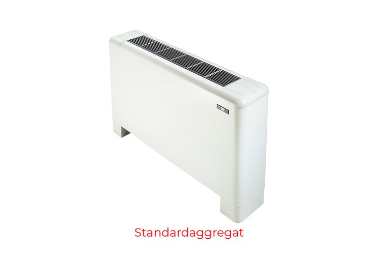 - Återluft underifrån, EC-fläkt/-ar, Steglös fläkthastighet, 4-raders batteri, 2-/3-vägsventiler (tillval), Styrutrustning (tillval)
