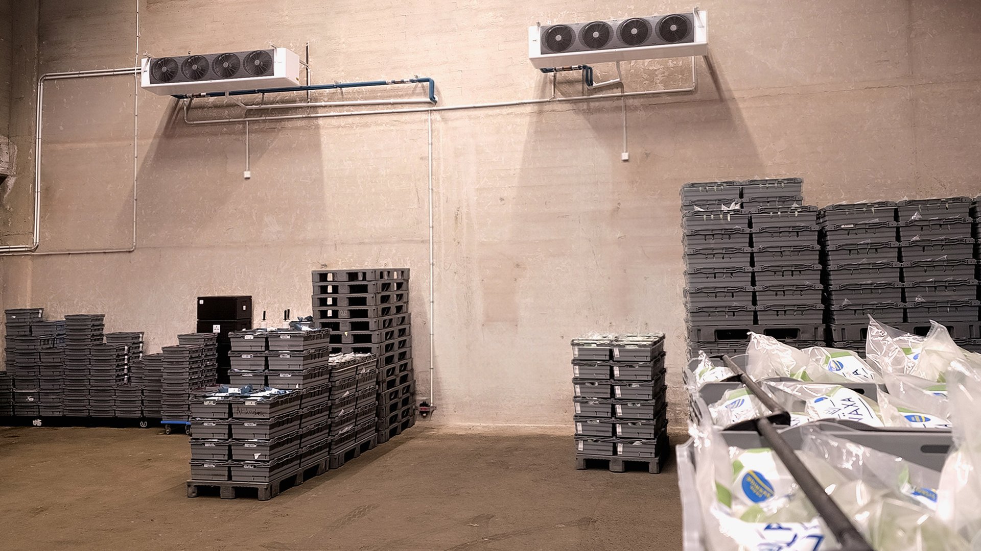 Lagret som Växa använder för leveranser var fram till alldeles nyligen något helt annat – en gammal däckverkstad helt utan kylsystem. För att få lokalen att fungera byggdes den om med nytt ytskikt, kontor och en sluss för att säkra temperaturen i lagret vid leveranser. Det var bara kyllösningen som fattades.