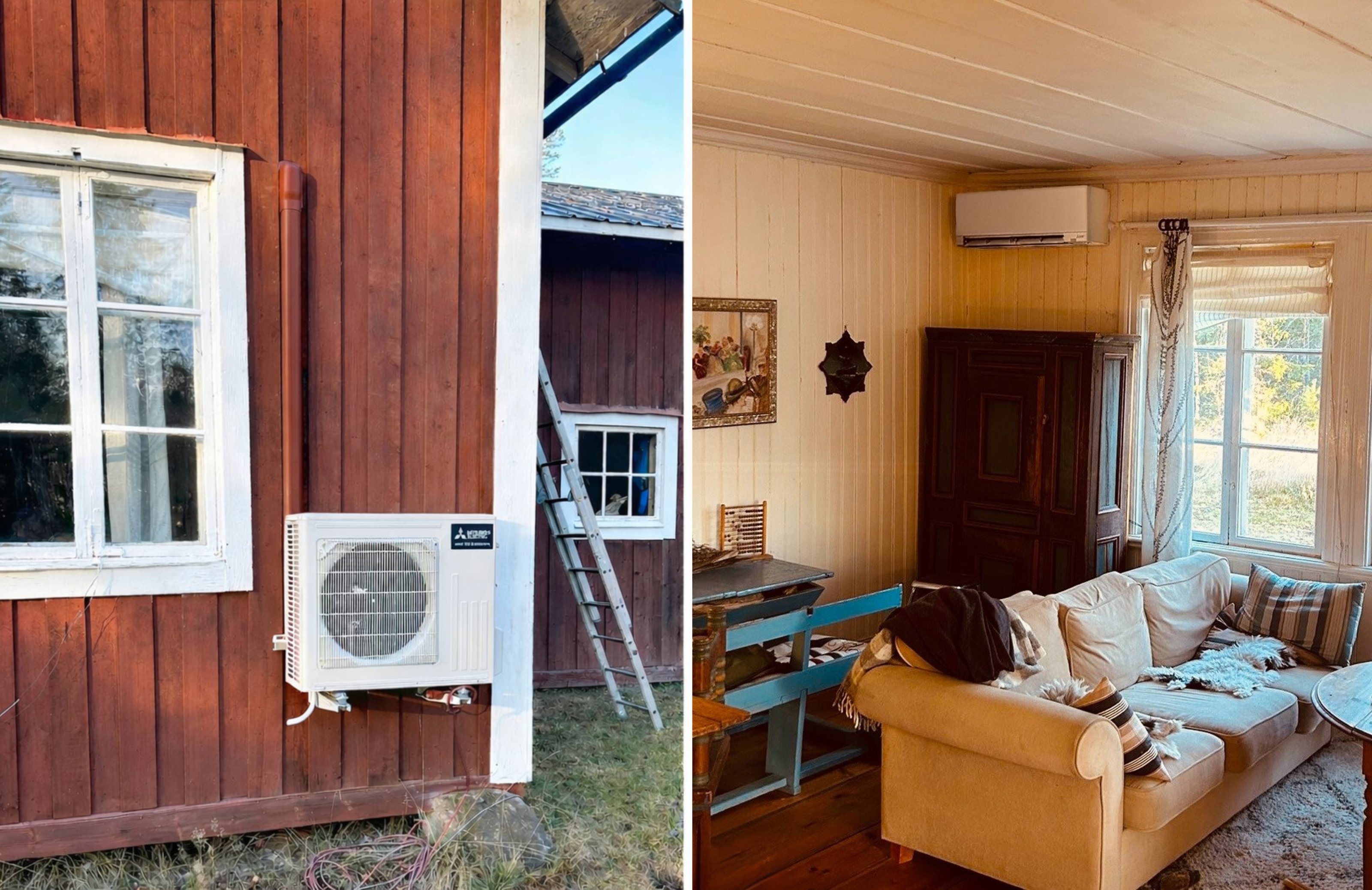 – När vi har pumpen inställd på 20–22 grader blir det varmt på ett helt annat sätt. Luft-luftvärmepumpen går pyttelitet och det blir ändå en jämn temperatur i huset. Tidigare med bara elementen pyste värmen ut innan den ens hade en chans att värma ordentligt. Nu kan vi vara här på vintern utan att oroa oss vare sig för kostnader eller att det ska bli för kallt, säger hon.
